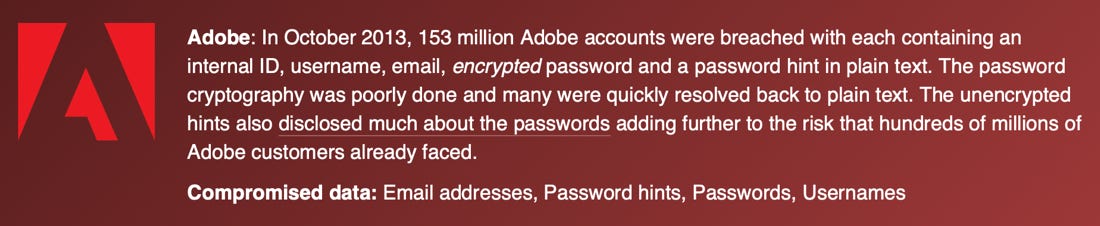 Notiz am Rande: Ich habe meine private Email Adresse auf gestohlene Login-Daten (User Credentials) überprüft und erfahren, dass meine Login-Daten 2013 bei einem großen Datenklau von Adobe-Servern gestohlen wurde.