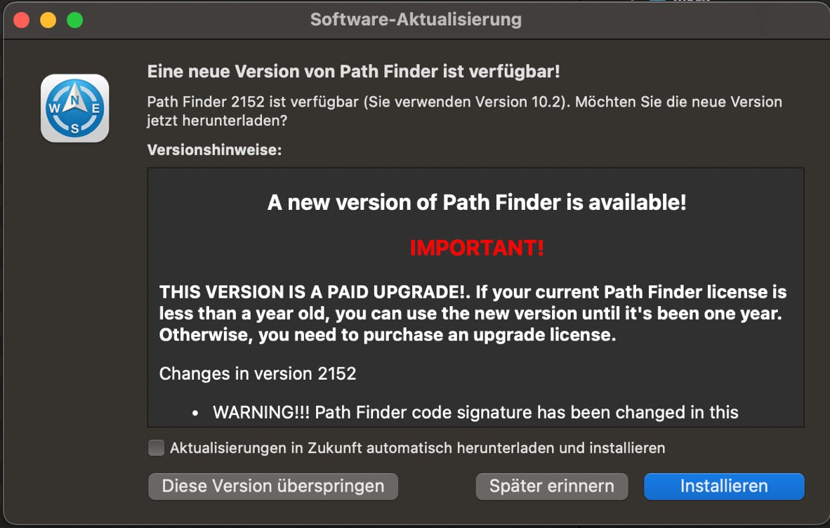 Insgesamt bietet ForkLift eine leistungsstarke und effiziente Möglichkeit, Dateien auf dem Mac zu verwalten. Die App ist einfach zu bedienen und bietet eine Vielzahl von Funktionen, die die Verwaltung von Dateien erleichtern. Obwohl es andere Dateimanager für den Mac gibt, ist ForkLift eine der besten Optionen für Benutzer, die eine leistungsfähige und anpassungsfähige Dateiverwaltungslösung suchen. Ich habe eine Zeitlang auch „Path Finder“ genutzt, welches aus meiner Sicht sogar bessere mit besseren bzw. mehr Funktionen aufwartet, aber eine in 2022 angekündigte Änderung der Geschäftsbedingungen von Cocoatech - nämlich Umstellung auf Abo-Modell hat mich davon abgehalten. Cocoatech sagte auch, man könne die „alte“ Version unbegrenzt weiter nutzten, was ich auch gerne getan hätte, aber … täglich beim ersten Start erscheint dieser Bildschirm - ohne die Möglichkeit dies abzustellen. Das erachte ich als unverschämt und habe nicht trotz des besseren Programms von Cocoatech und Path Finder distanziert.