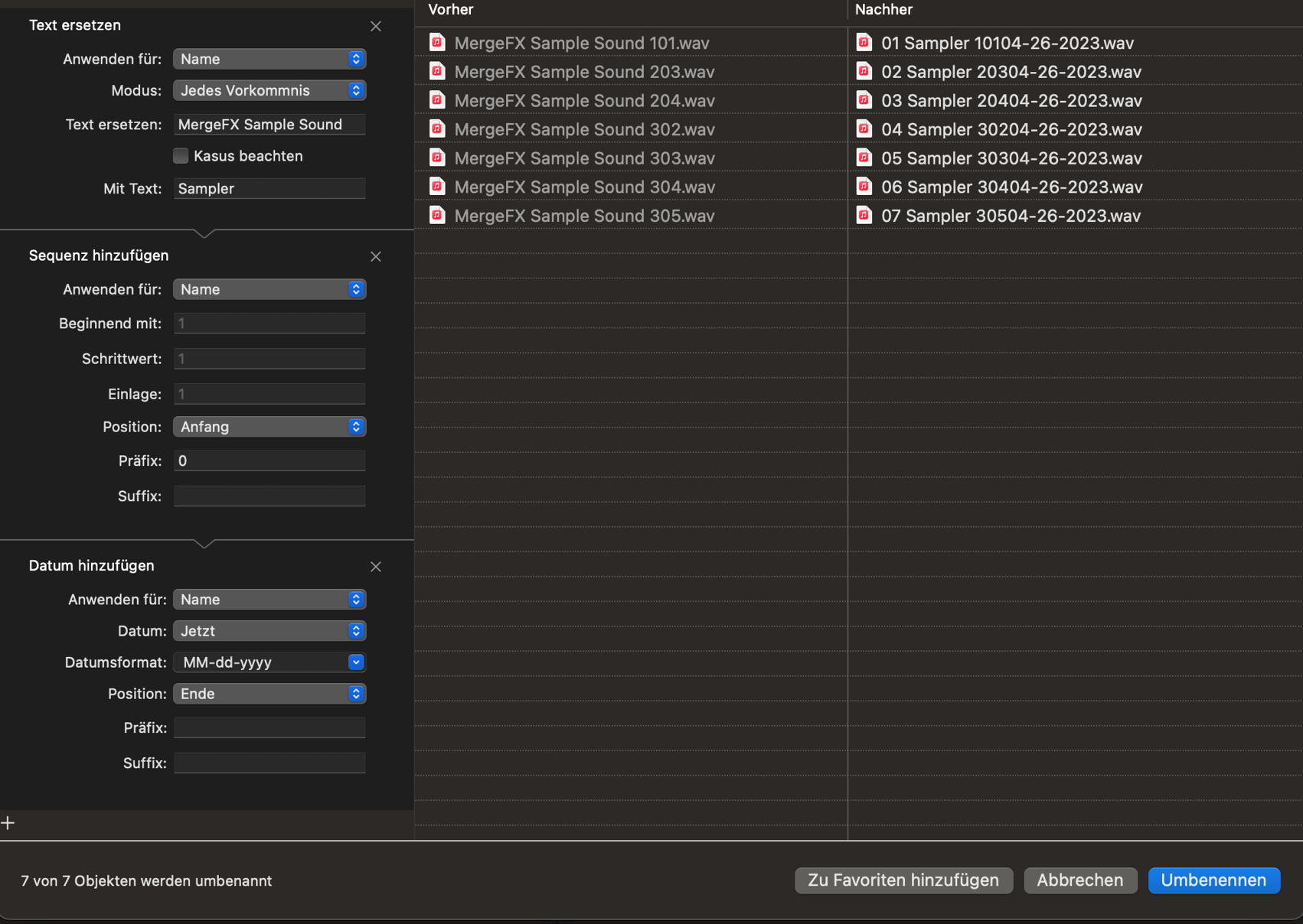 Ein weiteres Highlight von ForkLift ist die Möglichkeit, Dateien mit einer Stapelverarbeitung zu bearbeiten. Der Benutzer kann eine Vielzahl von Aktionen auf mehrere Dateien gleichzeitig anwenden, wie z.B. Umbenennen, Verschieben oder Löschen. Besonders hilfreich empfinde ich die Funktion zum Sapel-Umbenennen mehrerer Dateien.