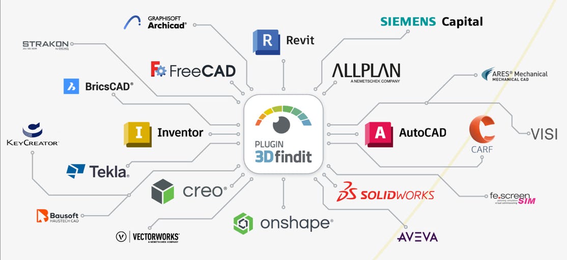 Auch zum Zugriff auf fertige 3D Elemente in unzähligen Herstellerdatenbanken über den Service von 3DFindIt.com gibt es ein Modul. FreeCAD wird sogar extra als CAD Anwendung auf der Seite von 3DFindIt neben vielen etablierten, professionellen CAD-Anwendungen erwähnt.