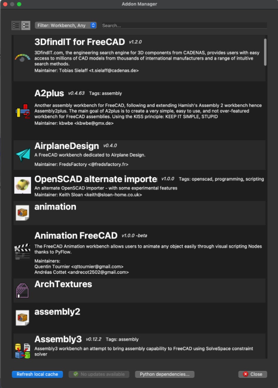 Dutzende weitere Module können aus dem FreeCAD Repository mit dem Add-on Manager hinzugeladen werden. Die Möglichkeiten sind riesig und werden ständig erweitert.