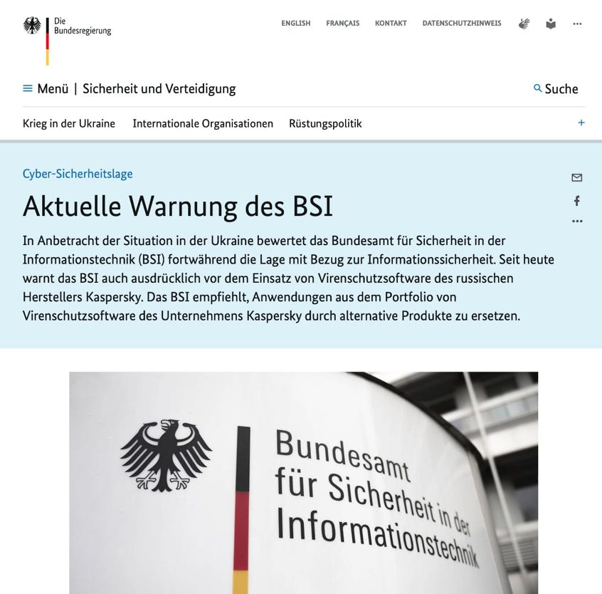Einer sehr bekannten und früher sowohl im privaten wie im professionellen Umfeld sehr erfolgreichen Software-Schmiede für ebensolche Software, der russischen Firma Kaspersky, hat der Ukraine-Krieg ordentlich das Geschäft verhagelt. Das Bundesamt für Sicherheit in der Informationstechnik (BSI) warnte in 2022 vor dem Einsatz entsprechender Software von Kaspersky.