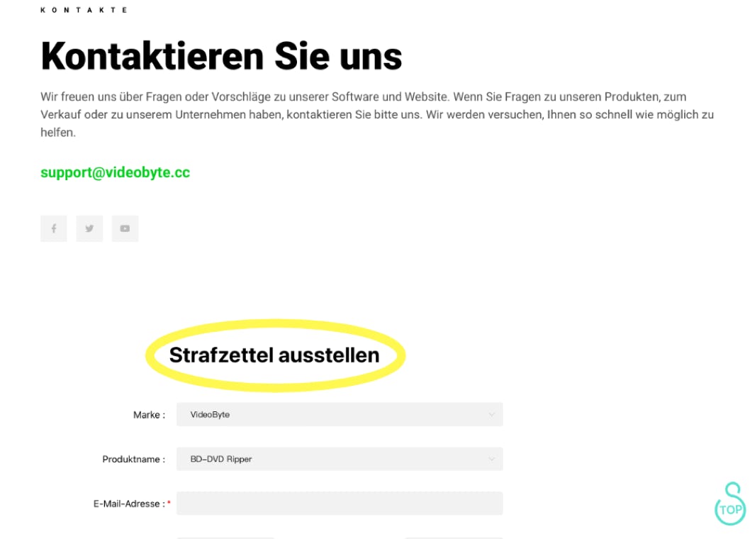 Die deutsche Übersetzung der Homepage ist ein bisschen „gewöhnungsbedürftig“, wie hier am Kontaktformular zu sehen ist.